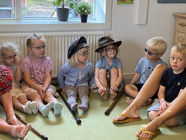 Børnene fik lov at låne hatte, briller og stokke, sådan som gamle mennesker har og bruger.